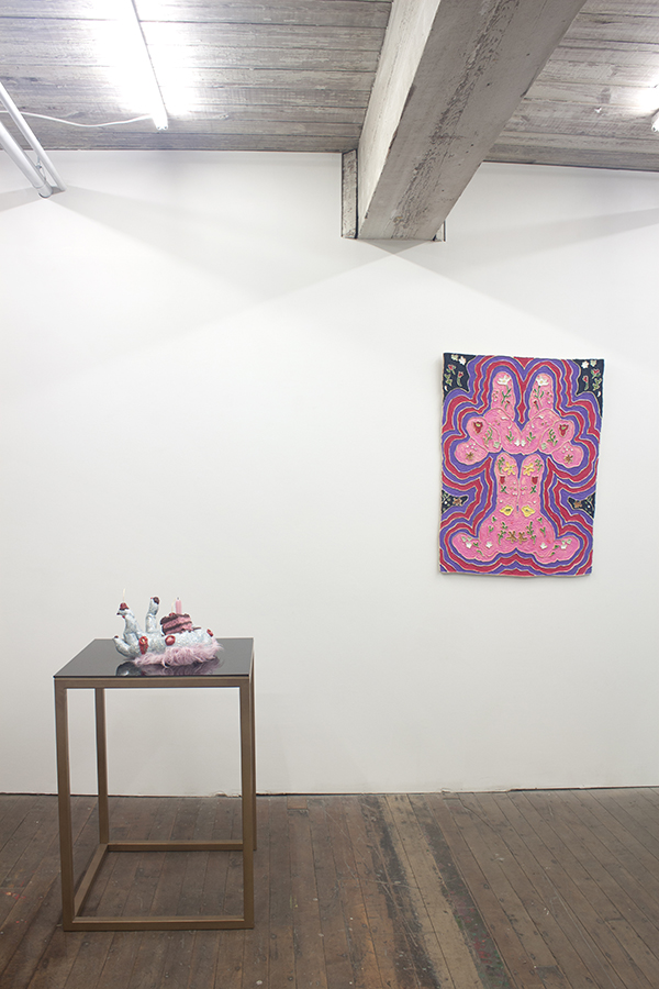 | Roxanne Jackson Sweet Tooth, 2019 Ceramic, glaze, gold leaf, candle, luster, faux fur 15 x 12 x 11 inches |
